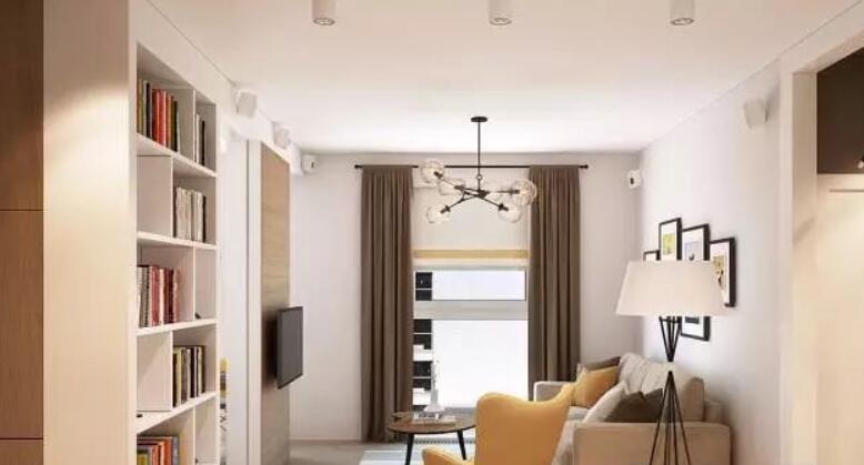 可以沙发和茶几都是属于比较小巧的款式,小空间里就不适合大家具,边上的墙面,还做了书柜,用来摆放装饰品也很完美。